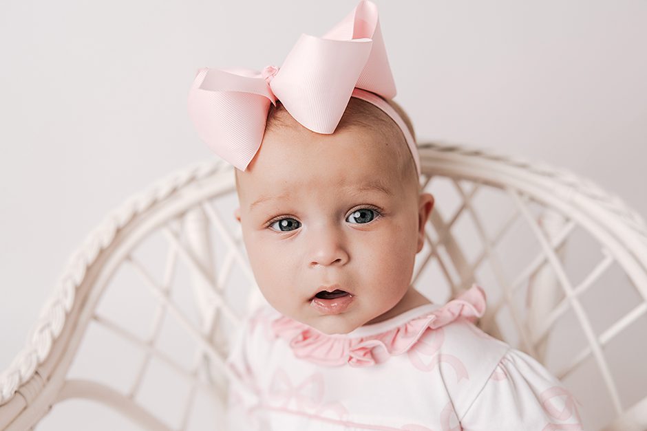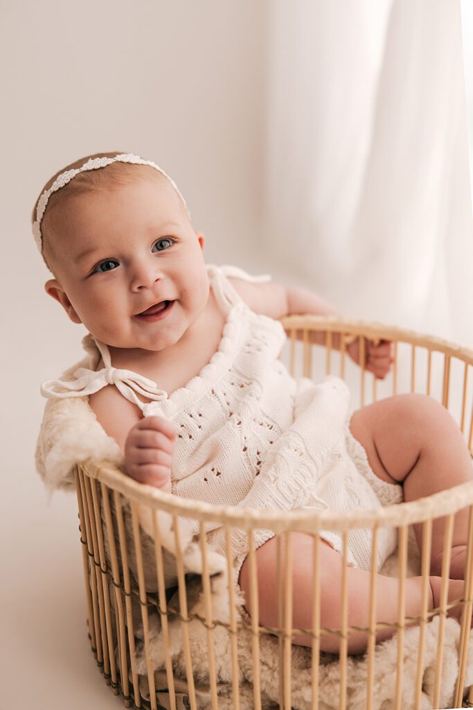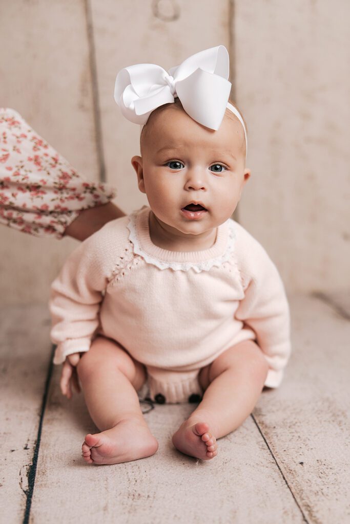 This beautiful baby girl was in my studio for the second time recently, to celebrate being 6 months old! It is truly one of my favorite ages to photograph. She was one of the most smiley babies I’ve ever taken pictures of (honest!). Especially with her cute little dimple- which she gets from her mama! Enjoy these adorable pictures- you won’t be able to keep from smiling!