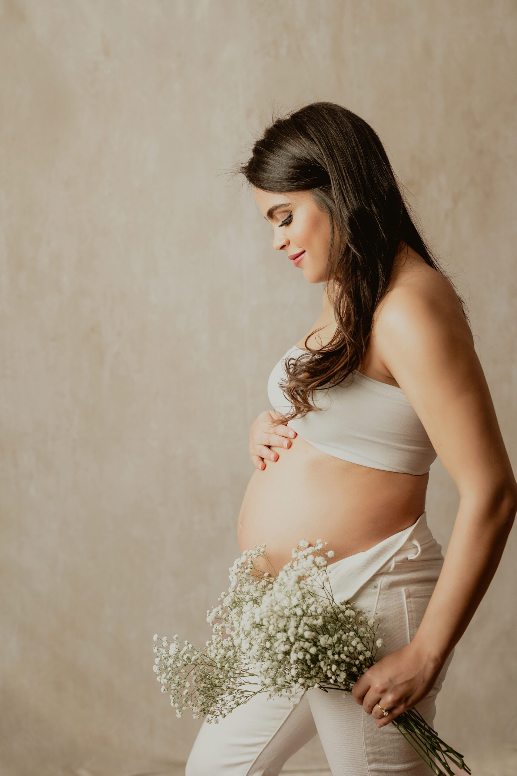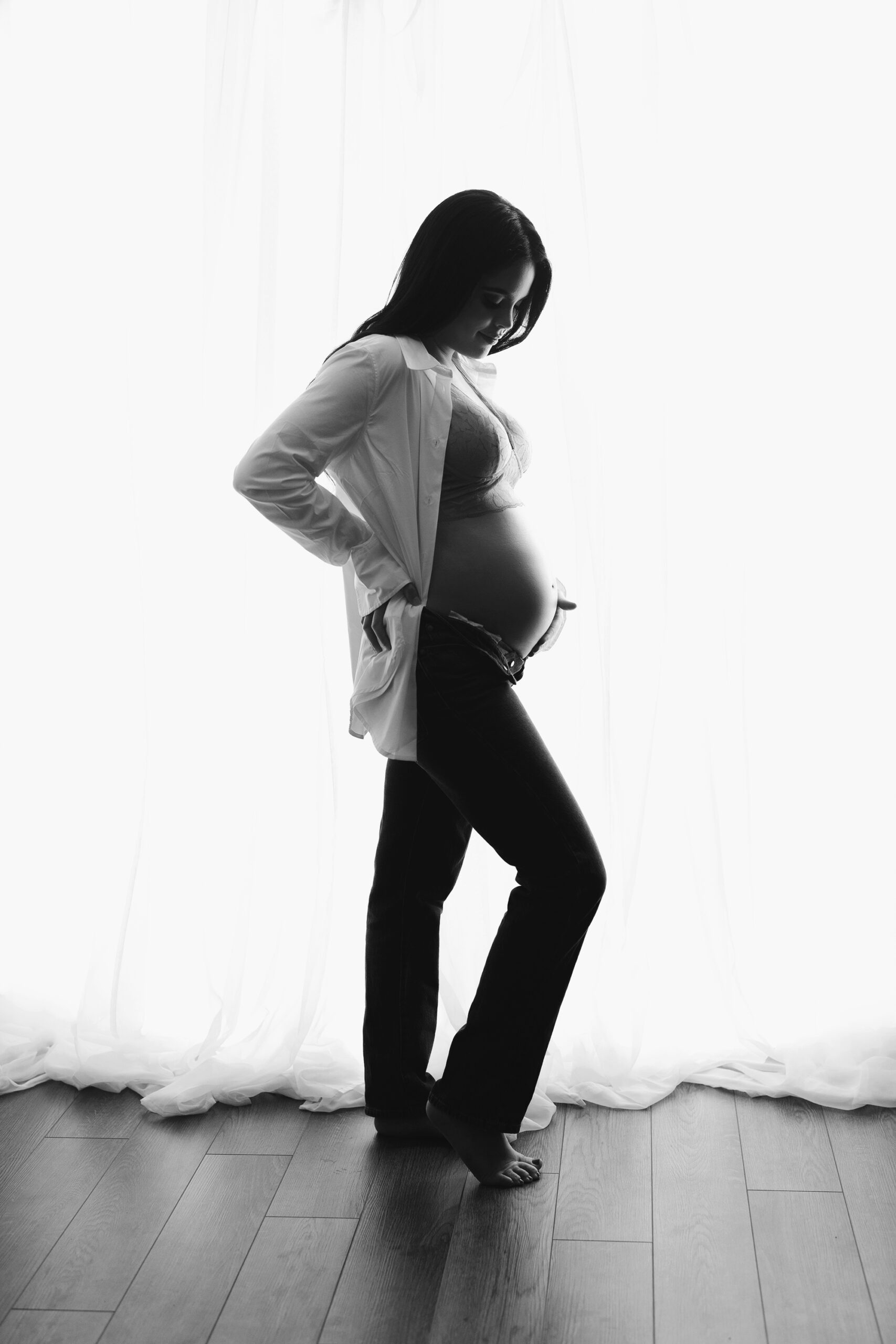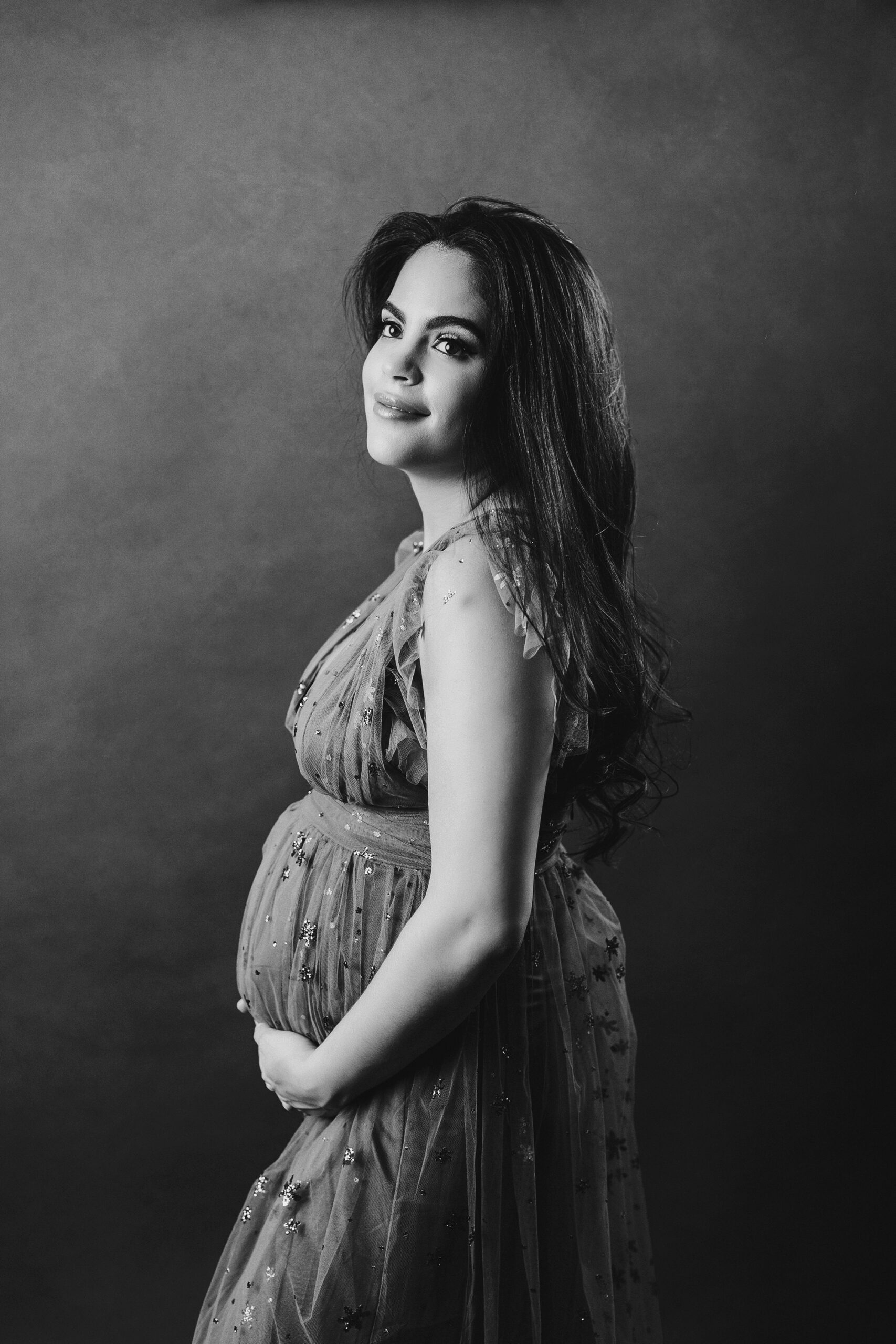 This beautiful mama originally wanted an outdoor maternity session in Raleigh. But it ended up raining! She decided that instead of rescheduling, she would move her session into the studio so that we could keep it on the same day. At first she was disappointed about the weather situation, but then once we started chatting about options in the studio and she started looking for inspiration online, she became excited about it and it turned out perfectly! Her session has such a classic look and she basically slayed in front of the camera. As a studio maternity photographer in Raleigh, it is so fun to be able to execute this minimal, timeless vision in the studio. It is such a great option to capture your pregnancy!