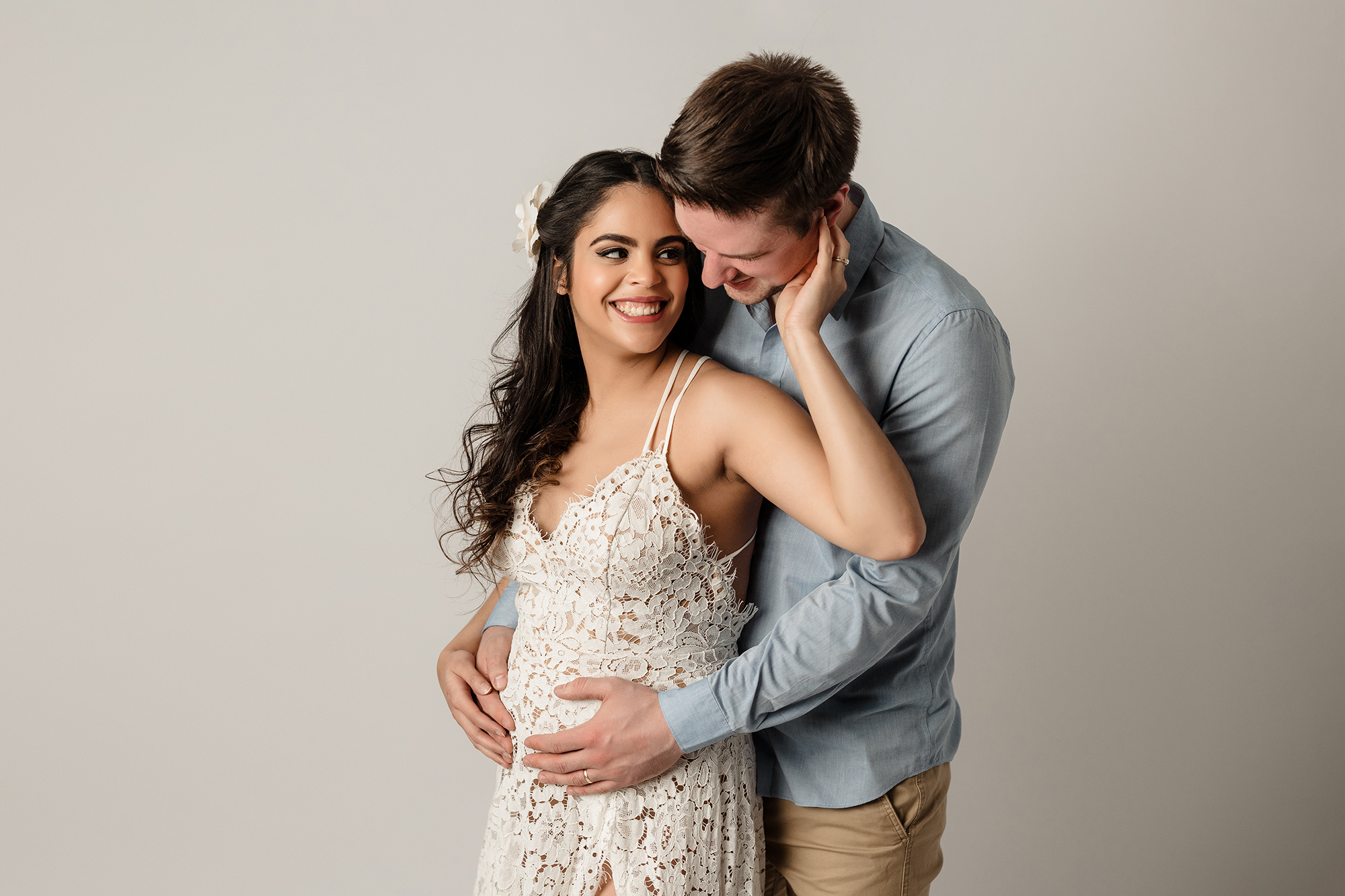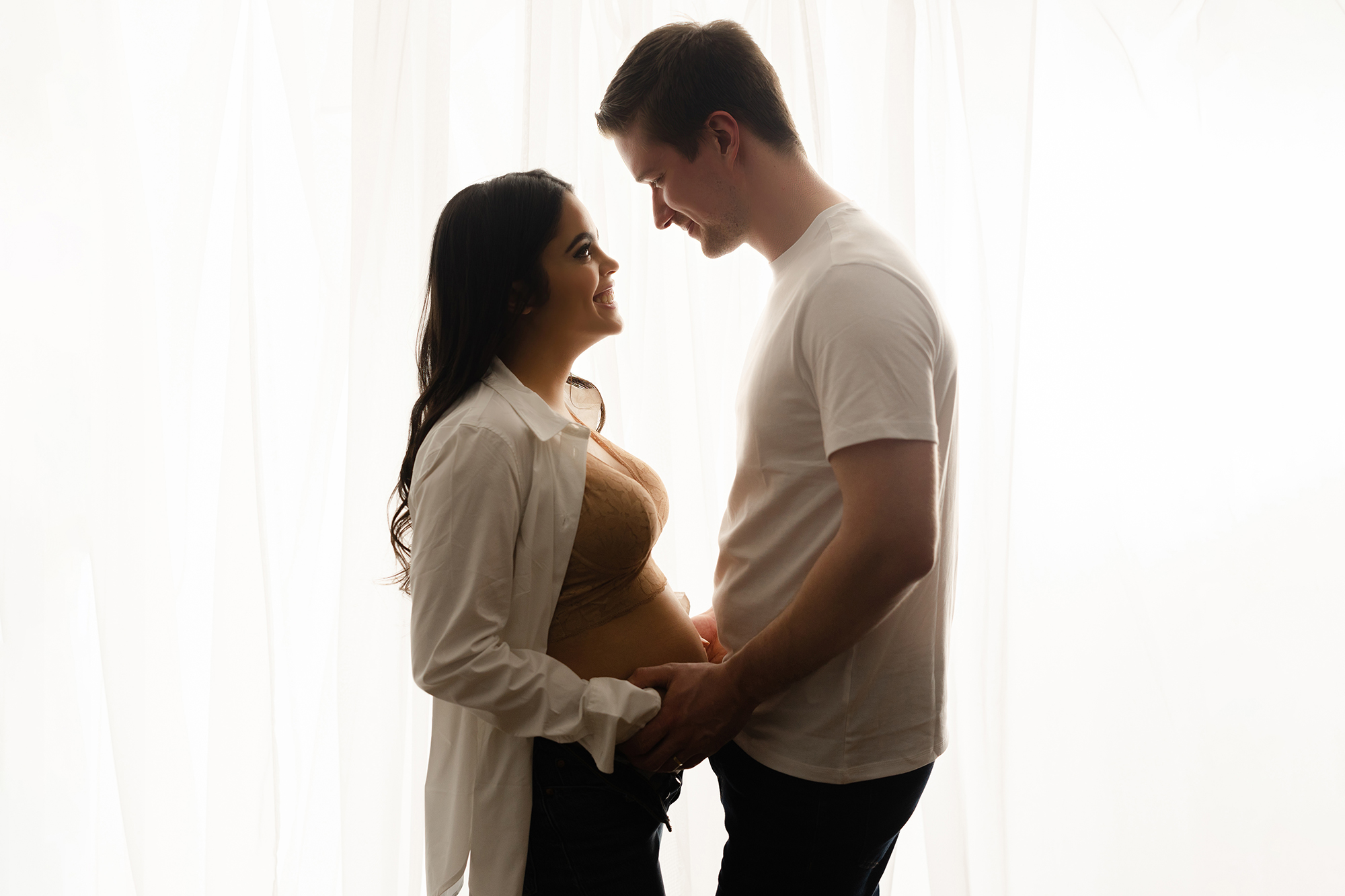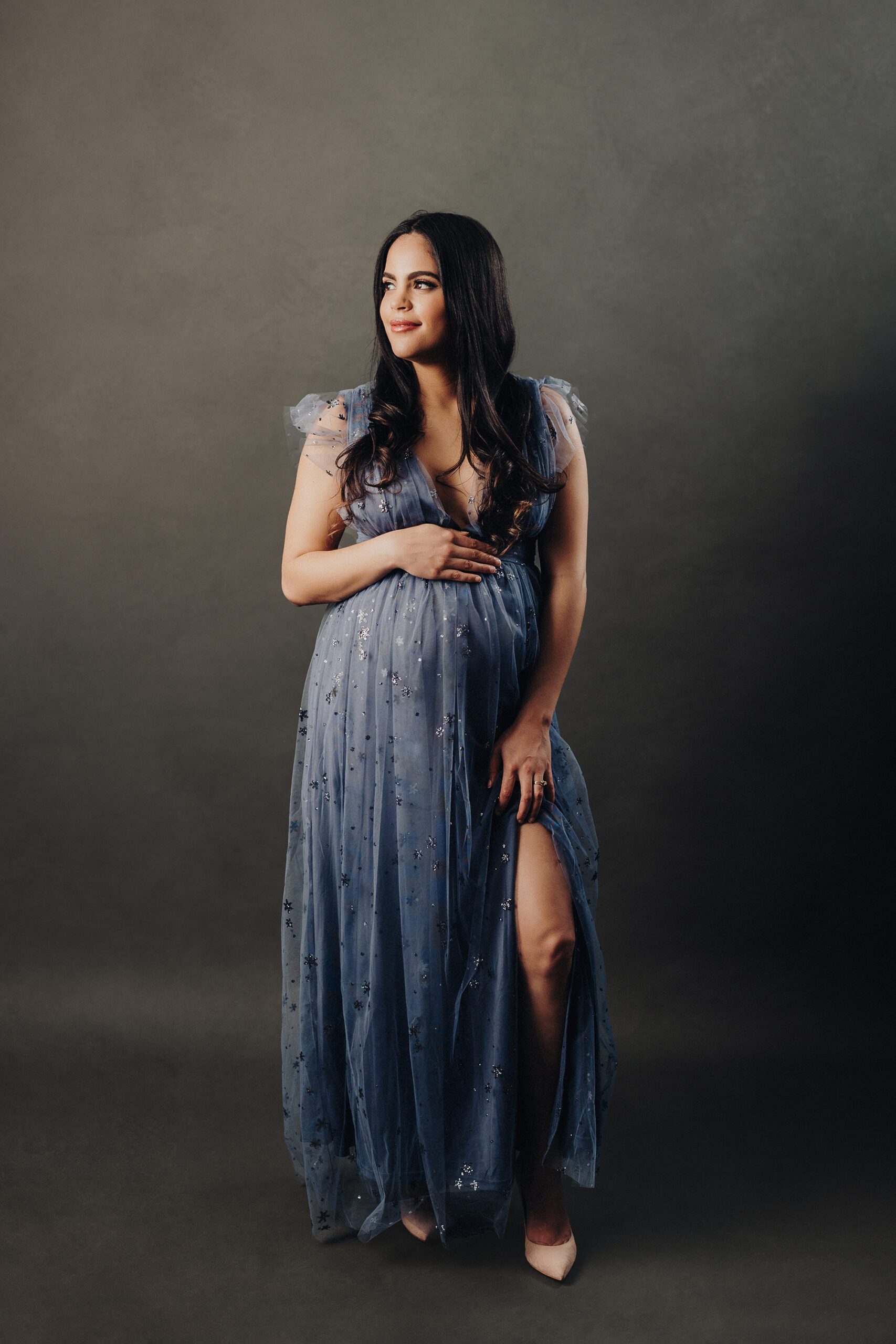 This beautiful mama originally wanted an outdoor maternity session in Raleigh. But it ended up raining! She decided that instead of rescheduling, she would move her session into the studio so that we could keep it on the same day. At first she was disappointed about the weather situation, but then once we started chatting about options in the studio and she started looking for inspiration online, she became excited about it and it turned out perfectly! Her session has such a classic look and she basically slayed in front of the camera. As a studio maternity photographer in Raleigh, it is so fun to be able to execute this minimal, timeless vision in the studio. It is such a great option to capture your pregnancy!